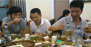 五一過后,成都的溫度驟升至33度,讓所有人都有點不適應。昨日趁著天氣微涼,公司領導帶領全公司員工在單位附近的“自貢香香嘴”舉辦了一次聚餐活動。大家都知道,自貢菜是出名的辣,這不,看看同事們,吃著辣辣的自貢菜,喝著小酒,是不是感覺很愜意呢?