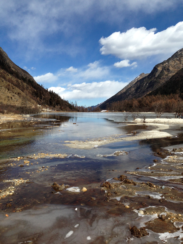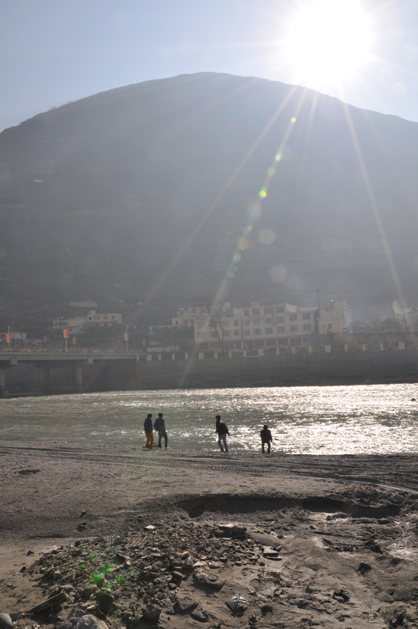 陽光明媚,讓在成都霧霾天氣下待久了的我們瞬間雀躍起來,途中經過一條不知名的河流,大家高興的玩了起來~~~