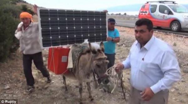 土耳其農(nóng)夫在驢背上放置太陽能電池板,在放牧時可采集太陽能為隨身攜帶的筆記本電腦和手機充電。