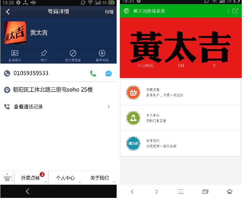 以最近人氣火爆的黃太吉煎餅為例,顧客在給黃太吉打了一個送餐電話后,即自動關(guān)注了黃太吉來店。隨后,黃太吉主動推送最新商品服務(wù)信息,顧客在360通訊錄中看到未讀信息,點擊進入后即可查看到黃太吉其他店鋪的相關(guān)信息,并可在線訂餐及商家導(dǎo)航。值得關(guān)注的是,當(dāng)中午訂餐熱線繁忙時,來店會提醒用戶轉(zhuǎn)為在線訂餐,并實時推送在線訂餐的優(yōu)惠信息,從而避免了因電話不通而造成的客戶流失。
