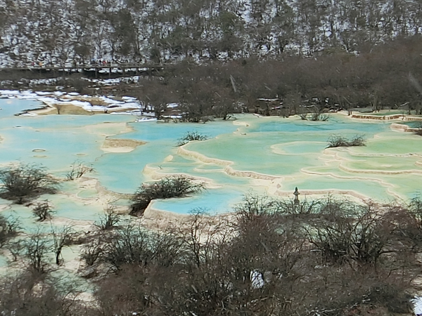 剛到五彩池,小冰粒一樣的雪就紛紛揚揚開始下了