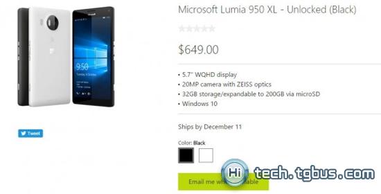 上線數小時微軟即宣布Lumia 950 XL已經售罄