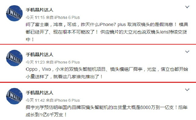 iPhone 7 Plus雙攝確認(rèn) 國產(chǎn)廠商將跟進(jìn)(圖片來自weibo)