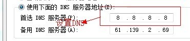 第三,   將DNS手動設置為如:8.8.8.8 或其它。